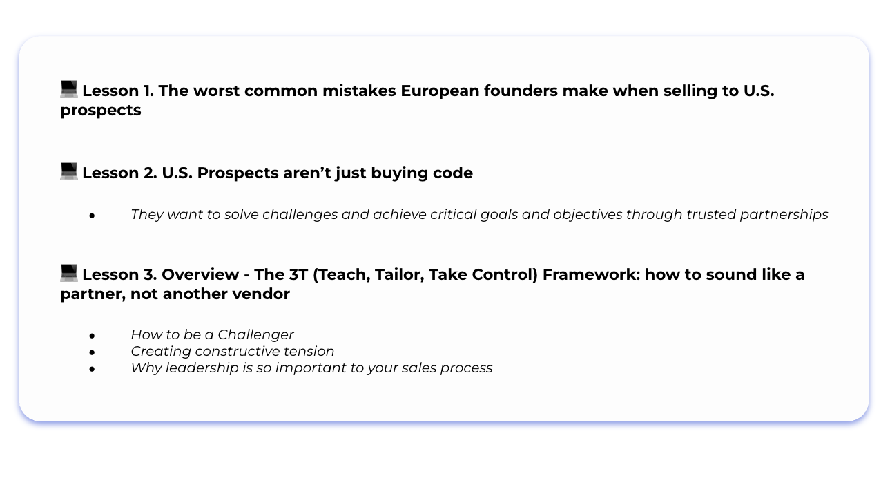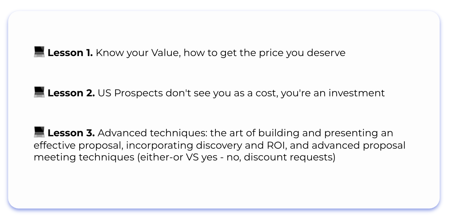 A 6-week online program for software development agency founders and sales teams who want to confidently sell to U.S. clients, raise their conversion rate, and increase their hourly rate toward the American benchmark —