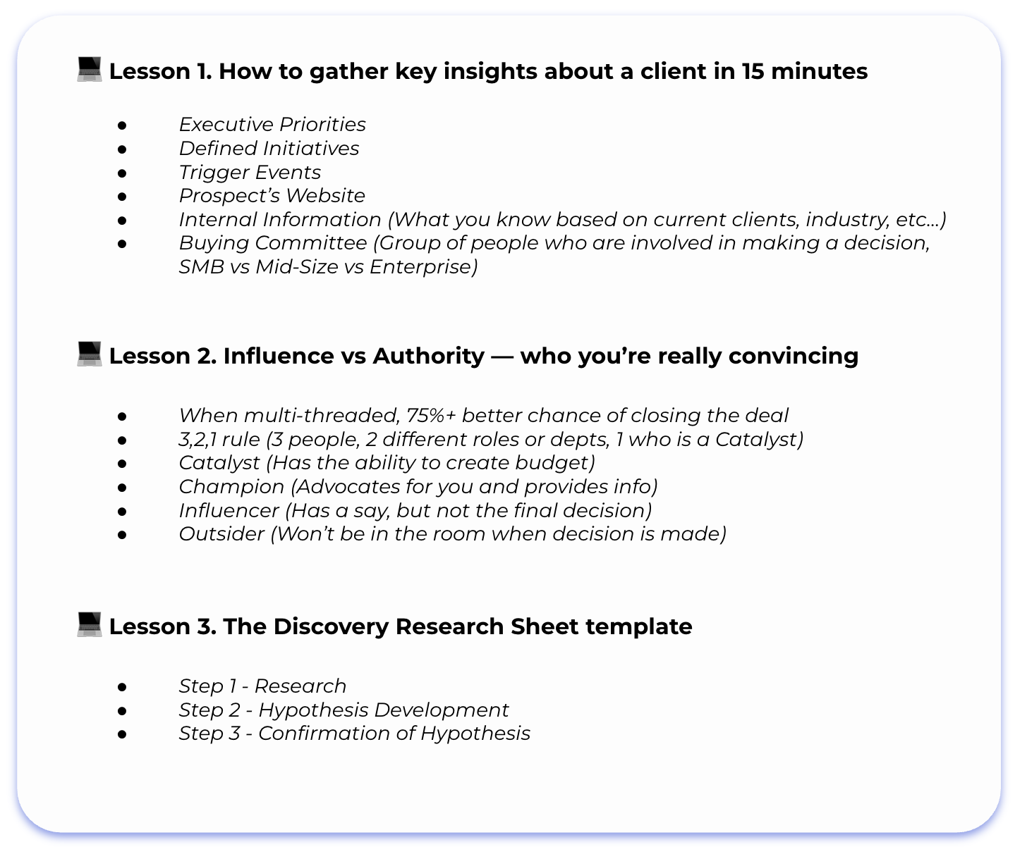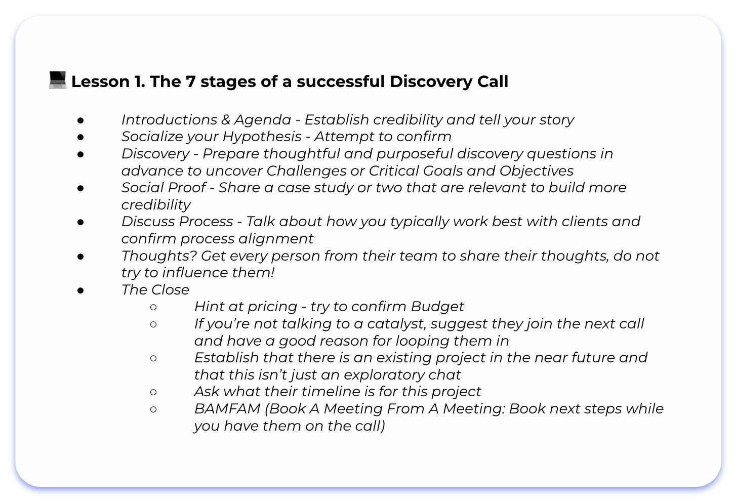 🎯 Goal: Integrate everything into your personal Discovery Call framework