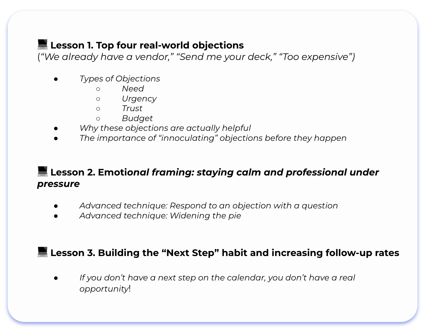 🎯 Goal: Stay confident when facing objections and move calls toward the next step
